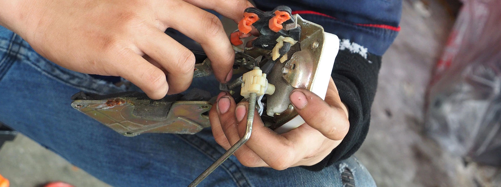 Now it's time to disassemble the actuator from the lock assembly by taking off the white cover. To separate that, you need to loosen the screws on both sides. Carefully see these steps, so you don't feel frustrated when you assemble them back.