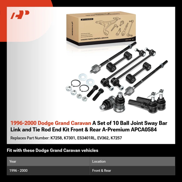 1996-2000 Dodge Grand Caravan A Set of 10 Ball Joint Sway Bar Link and Tie Rod End Kit Front & Rear A-Premium APCA0584