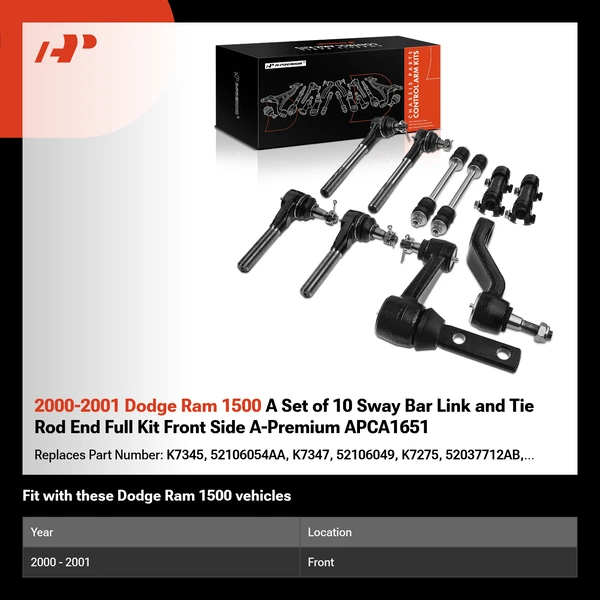 2000-2001 Dodge Ram 1500 A Set of 10 Sway Bar Link and Tie Rod End Full Kit Front Side A-Premium APCA1651