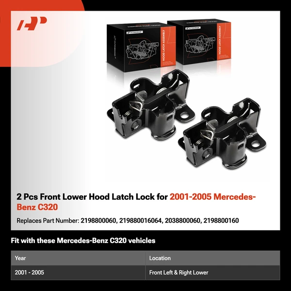 2 Pcs Front Lower Hood Latch Lock for 2001-2005 Mercedes-Benz C320