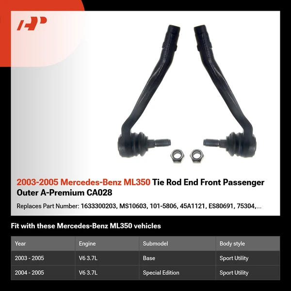 A-Premium Aftermarket Tie Rod End: Multiple Options AvailableWith A-Premium, you have a variety of expertly engineered Tie Rod End options to suit your vehicle's needs. Each replacement is backed by a 3-Year unlimited mileage warranty for peace of mind. Use our Vehicle Selector to explore multiple options and find the perfect fit.