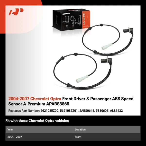 2004-2007 Chevrolet Optra Front Driver & Passenger ABS Speed Sensor A-Premium APABS3865