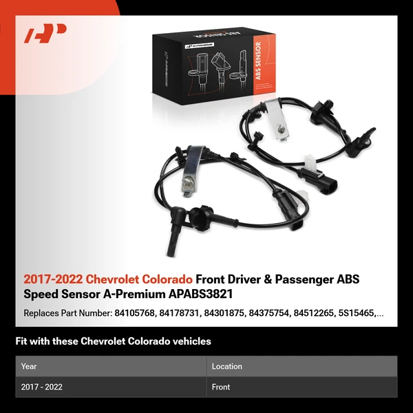 2017-2022 Chevrolet Colorado Front Driver & Passenger ABS Speed Sensor A-Premium APABS3821