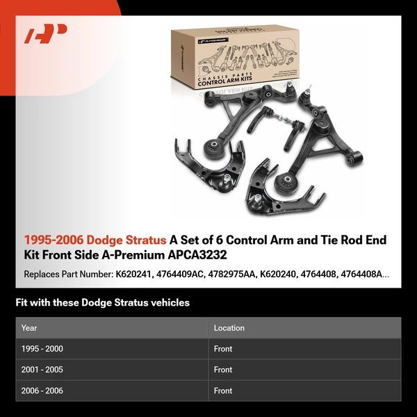 1995-2006 Dodge Stratus A Set of 6 Control Arm and Tie Rod End Kit Front Side A-Premium APCA3232