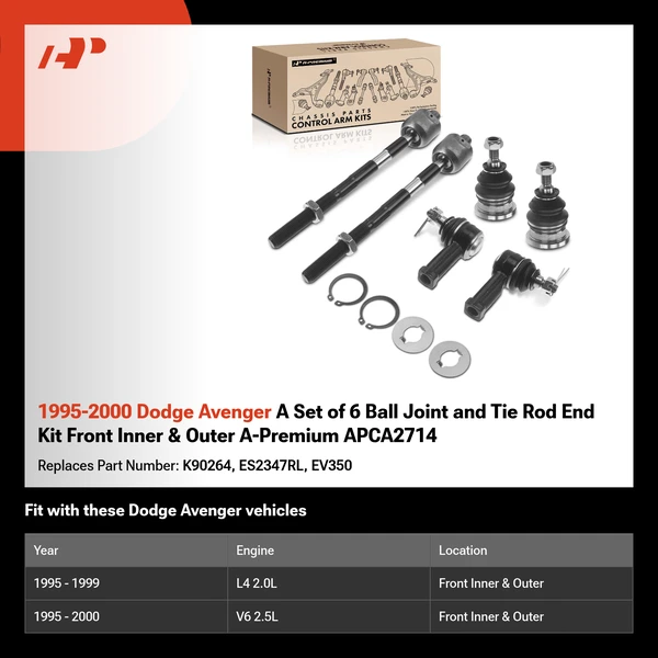 1995-2000 Dodge Avenger A Set of 6 Ball Joint and Tie Rod End Kit Front Inner & Outer A-Premium APCA2714