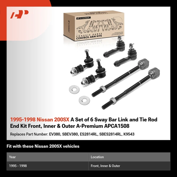 1995-1998 Nissan 200SX A Set of 6 Sway Bar Link and Tie Rod End Kit Front, Inner & Outer A-Premium APCA1508