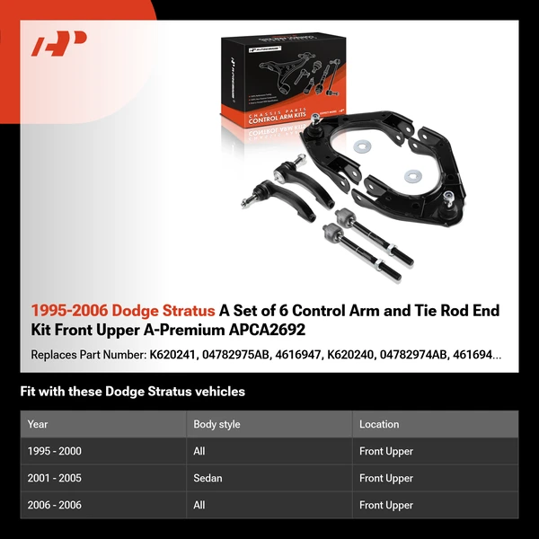1995-2006 Dodge Stratus A Set of 6 Control Arm and Tie Rod End Kit Front Upper A-Premium APCA2692