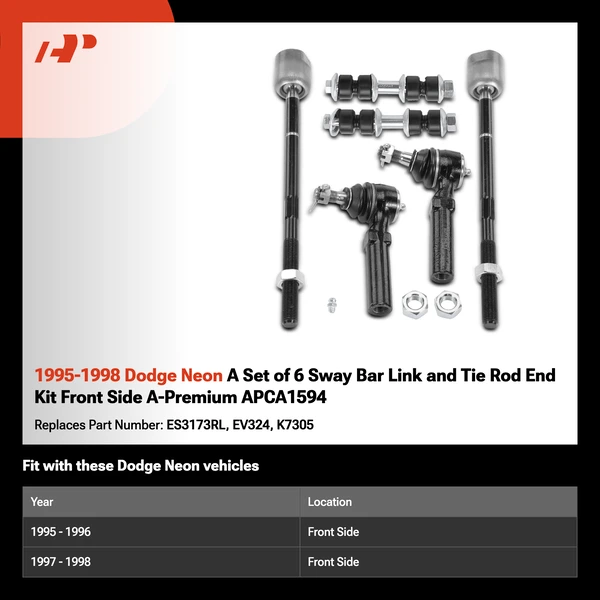 1995-1998 Dodge Neon A Set of 6 Sway Bar Link and Tie Rod End Kit Front Side A-Premium APCA1594