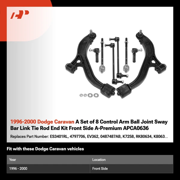 1996-2000 Dodge Caravan A Set of 8 Control Arm Ball Joint Sway Bar Link Tie Rod End Kit Front Side A-Premium APCA0636
