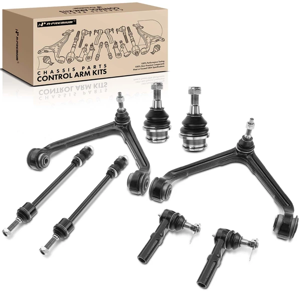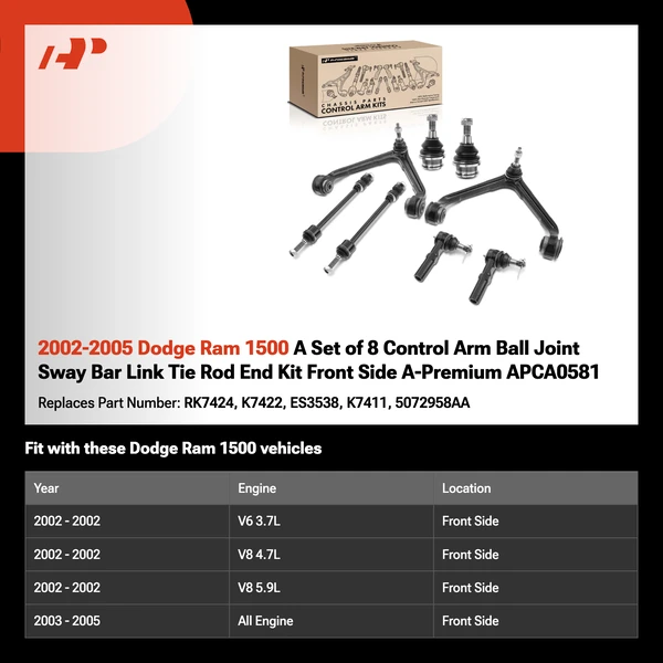 2002-2005 Dodge Ram 1500 A Set of 8 Control Arm Ball Joint Sway Bar Link Tie Rod End Kit Front Side A-Premium APCA0581