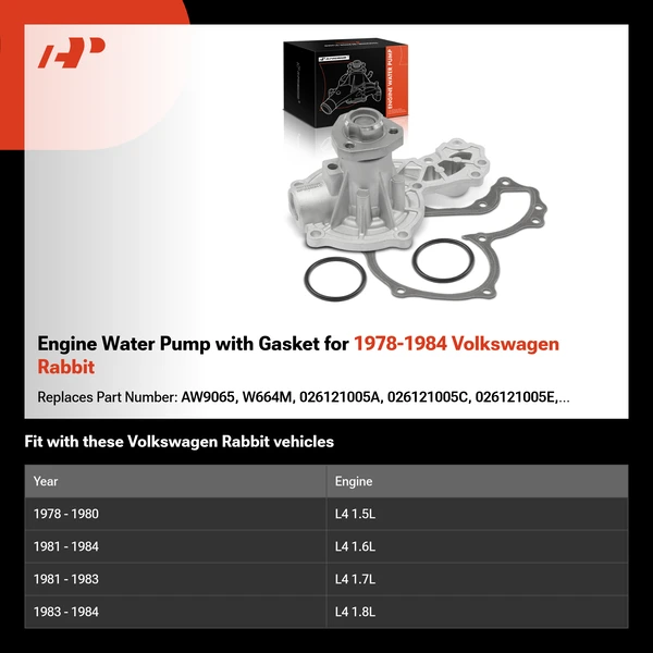Engine Water Pump with Gasket for 1978-1984 Volkswagen Rabbit