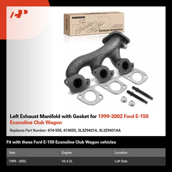 Left Exhaust Manifold with Gasket for 1999-2002 Ford E-150 Econoline Club Wagon