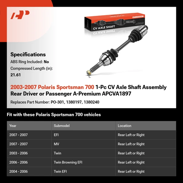 High quality A-Premium aftermarket parts - CV Axle Shaft A-Premium offers a 2-Year unlimited mileage warranty on our expertly engineered CV Axle Shaft Replacement for cars. Get the perfect car CV Axle Shaft match for your vehicle by using our Vehicle Selector.