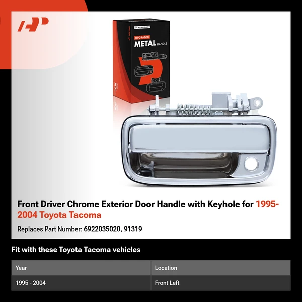 Front Driver Chrome Exterior Door Handle with Keyhole for 1995-2004 Toyota Tacoma