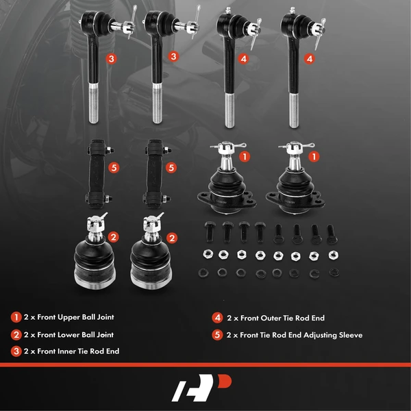 A Set of 10 Ball Joint Tie Rod End and Adjusting Sleeve Kit Front Inner & Outer A-Premium APCA2499