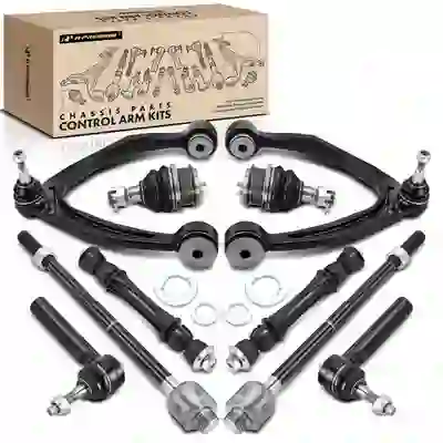Kit Parts Included[{"label":"1x Front Left Upper Control Arm and Ball Joint Assembly","value":""},{"label":" 1x Front Right Upper Control Arm and Ball Joint Assembly","value":""},{"label":" 1x Front Left Lower Control Arm and Ball Joint Assembly","value":""},{"label":" 1x Front Right Lower Control Arm and Ball Joint Assembly","value":""},{"label":" 2x Front Sway Bar Link","value":""},{"label":" 2x Outer Tie Rod End","value":""},{"label":" 2x Inner Tie Rod End","value":""}]